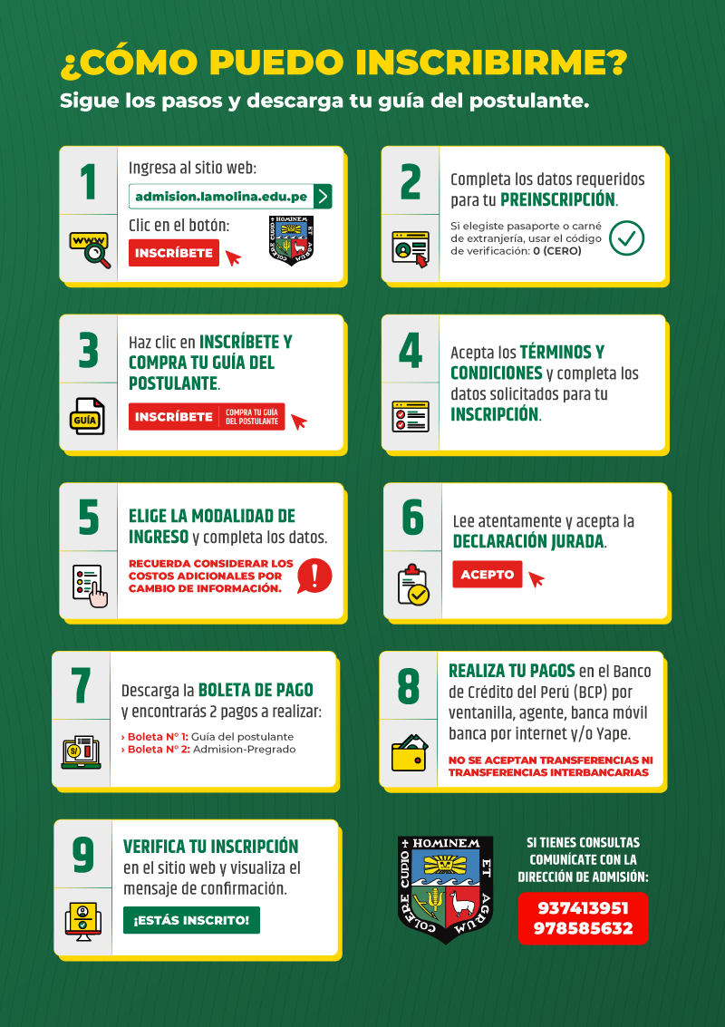 Av. La Molina s/n La Molina | Teléfono: 01-6147800 anexo 137 | 937413951 - 978585632 - 978585442 | Correo: admision@lamolina.edu.pe |POLÍTICA DE PRIVACIDAD